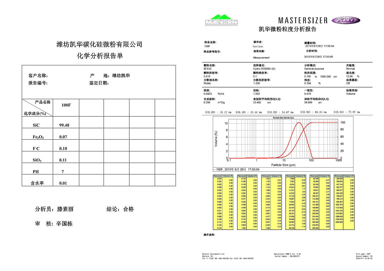 濰坊凱華碳化硅微粉有限公司地址:濰坊市坊子區坊城街道永寧路0669號 傳真:0536-7669058